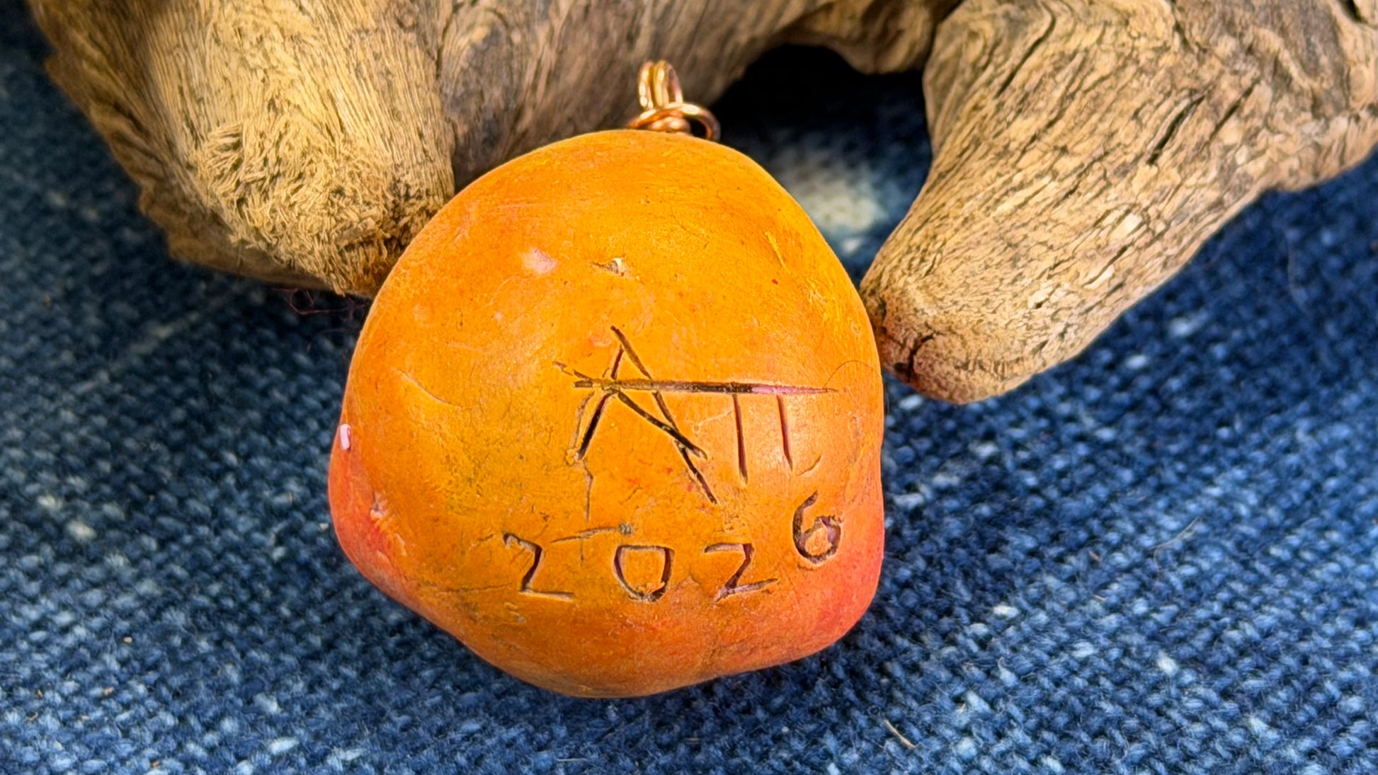 Hand-sculpted from polymer clay then decorated and painted. Signed and dated by the artist on back.