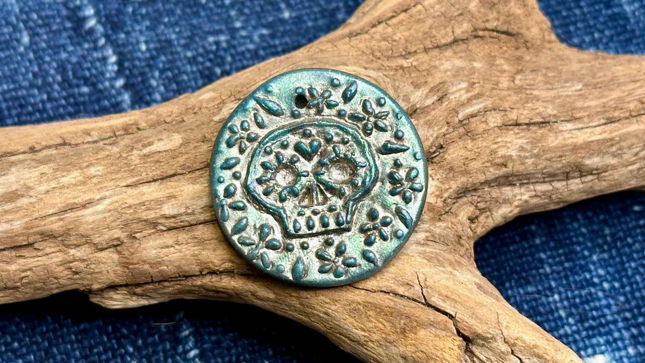 Each piece in this collection is pressed by hand and decorated using various surface treatments and embellishments. Each pendant is unique and no two are exactly the same. You may not receive the exact pendant shown in the photo(s).