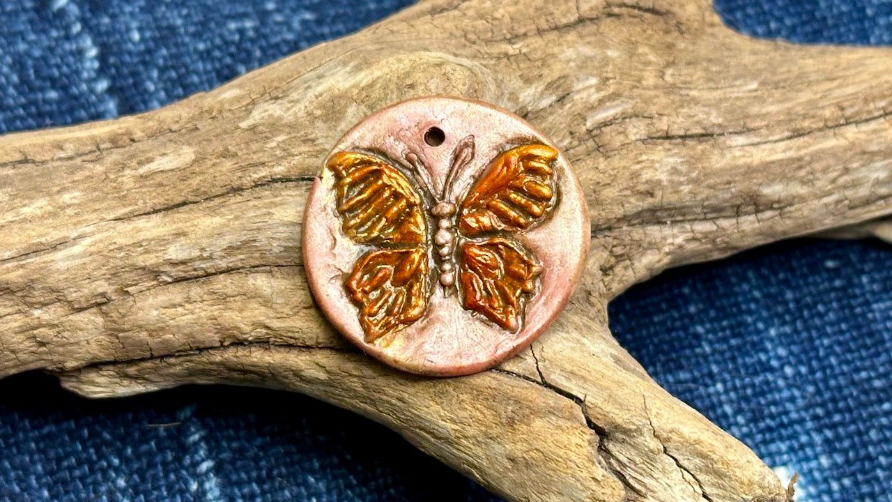 Each piece in this collection is pressed by hand and decorated using various surface treatments and embellishments. Each pendant is unique and no two are exactly the same. You may not receive the exact pendant shown in the photo(s).