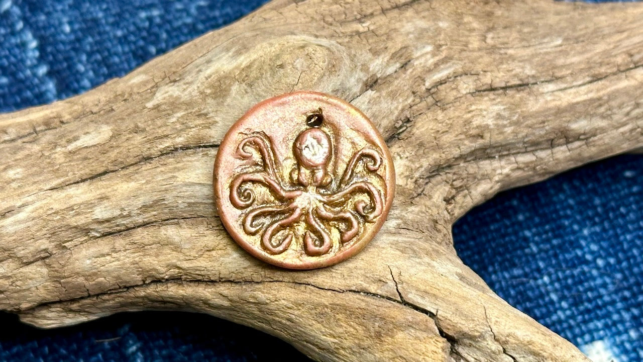 Each piece in this collection is pressed by hand and decorated using various surface treatments and embellishments. Each pendant is unique and no two are exactly the same. You may not receive the exact pendant shown in the photo(s).