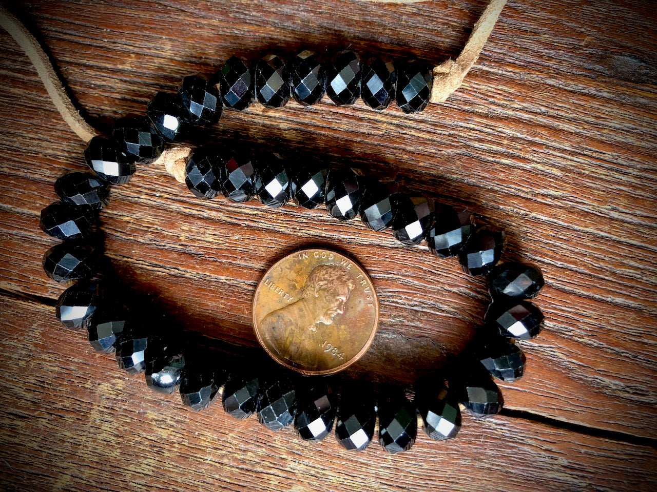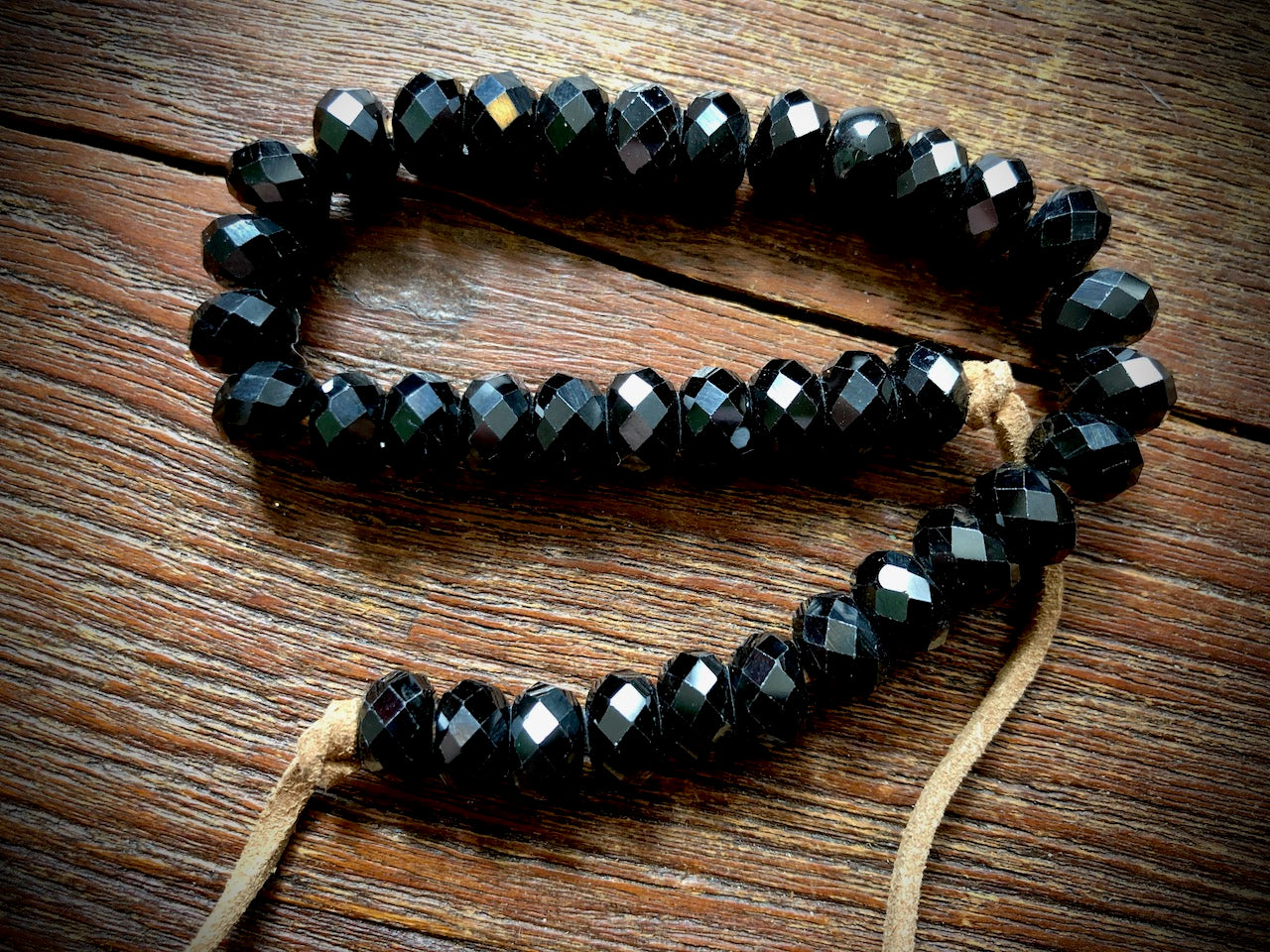 This listing is for a 8 inch strand of Black Spinel 8mm Diamond Cut Large Hole Faceted Rondelle Beads.