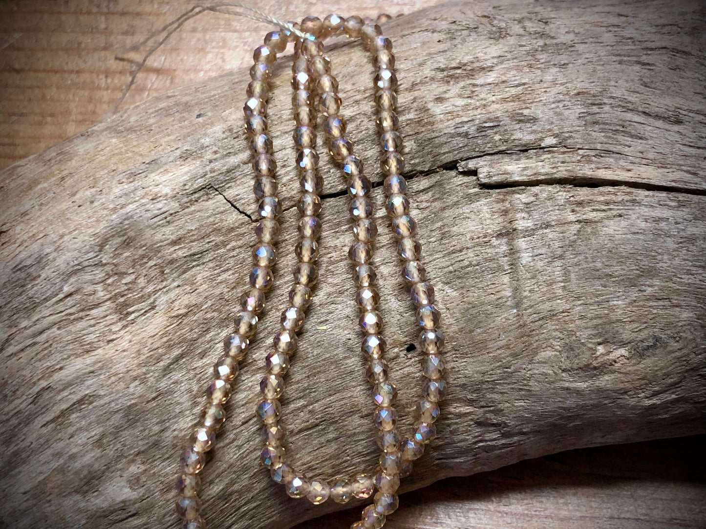 Thunder Polish Glass Faceted Rounds Strand - Champagne AB - 3mm - 14”