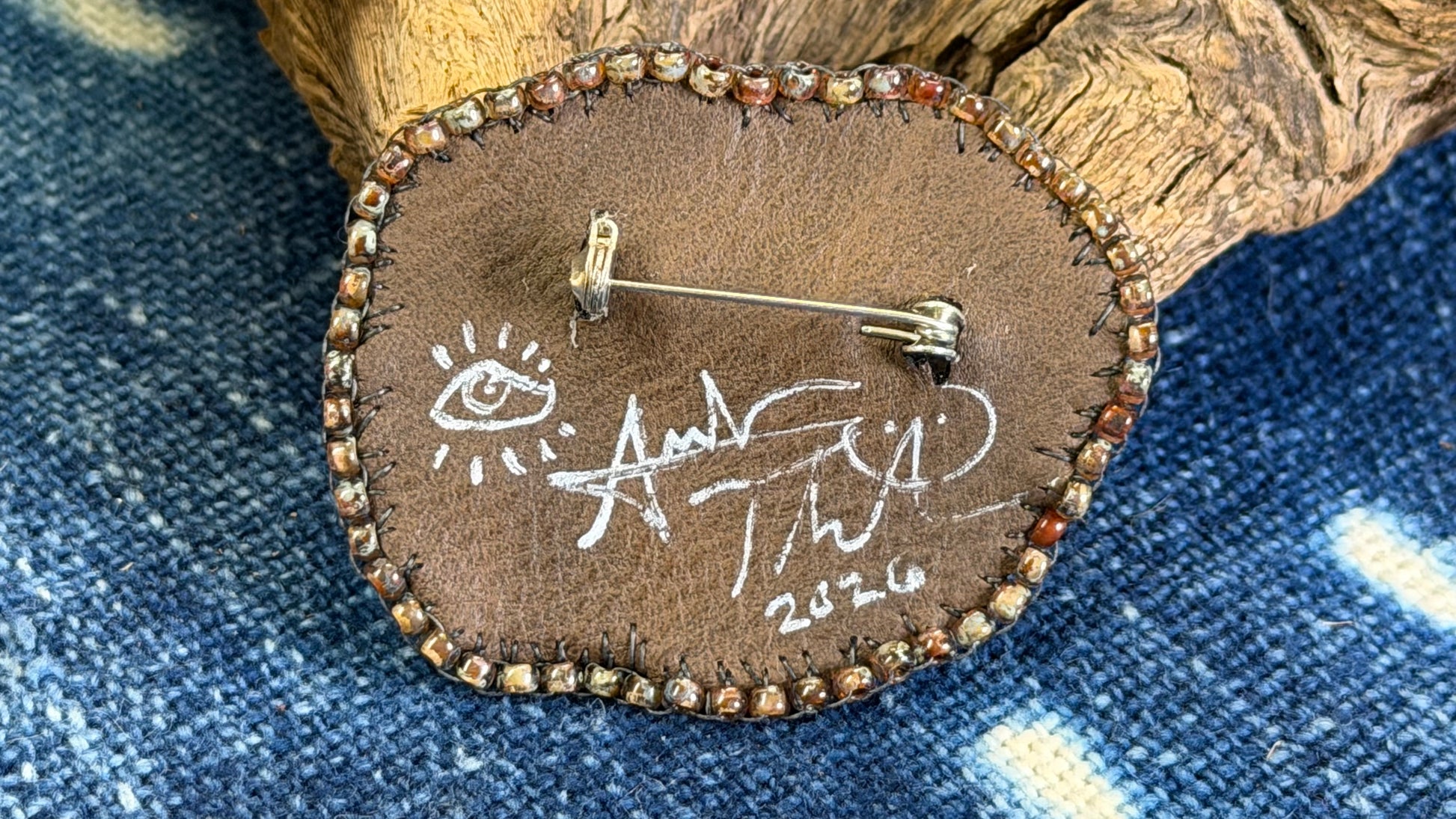 Hand-beaded embroidery by Andrew. Signed and dated on back.